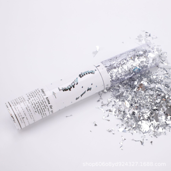 Пневмохлопушка, Серебро, Конфетти дробленое, 40 см, 1 шт.